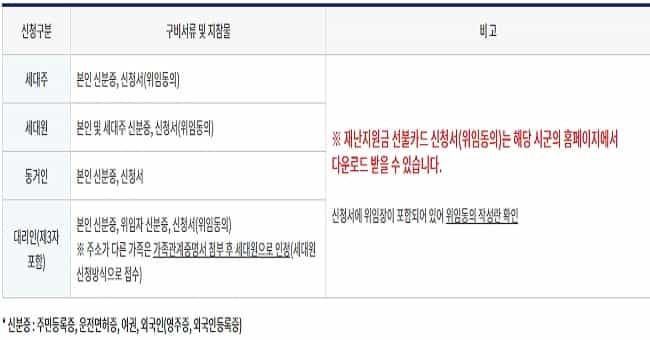 - 세대주가 동거인을 대리신청할 경우 동거인의 위임동의, 동거인 신분증 제출, 확인 후 지급가능
