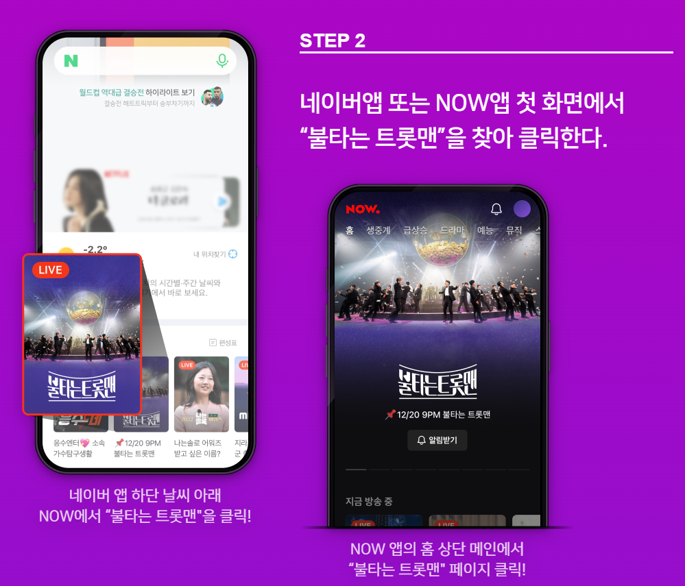 스마트폰에서 네이버 앱 또는 NOW 앱에 접속한다.