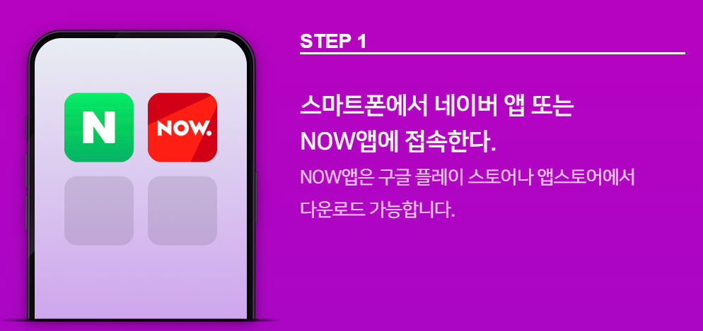 NOW앱은 구글 플레이 스토어나 앱스토에서 다운로드 가능합니다.