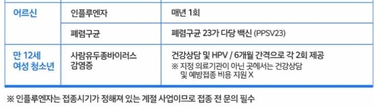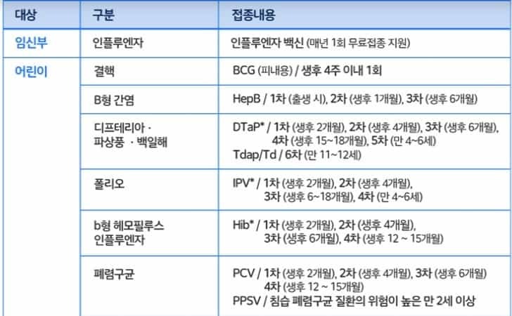 예방접종 무료접종 지원 종류 대상 신청 방법