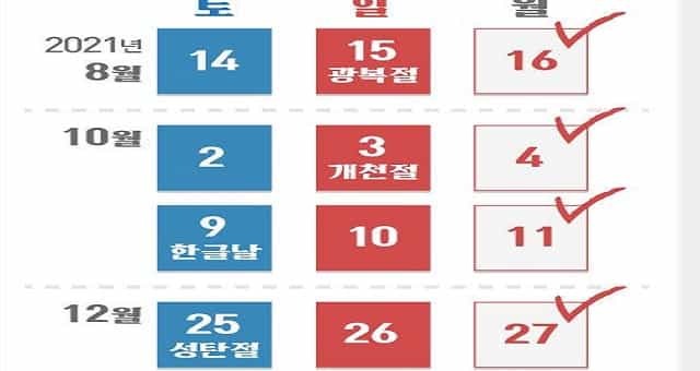 2021 대체공휴일 일정 확대 법안 확정 중소기업 제외대상
